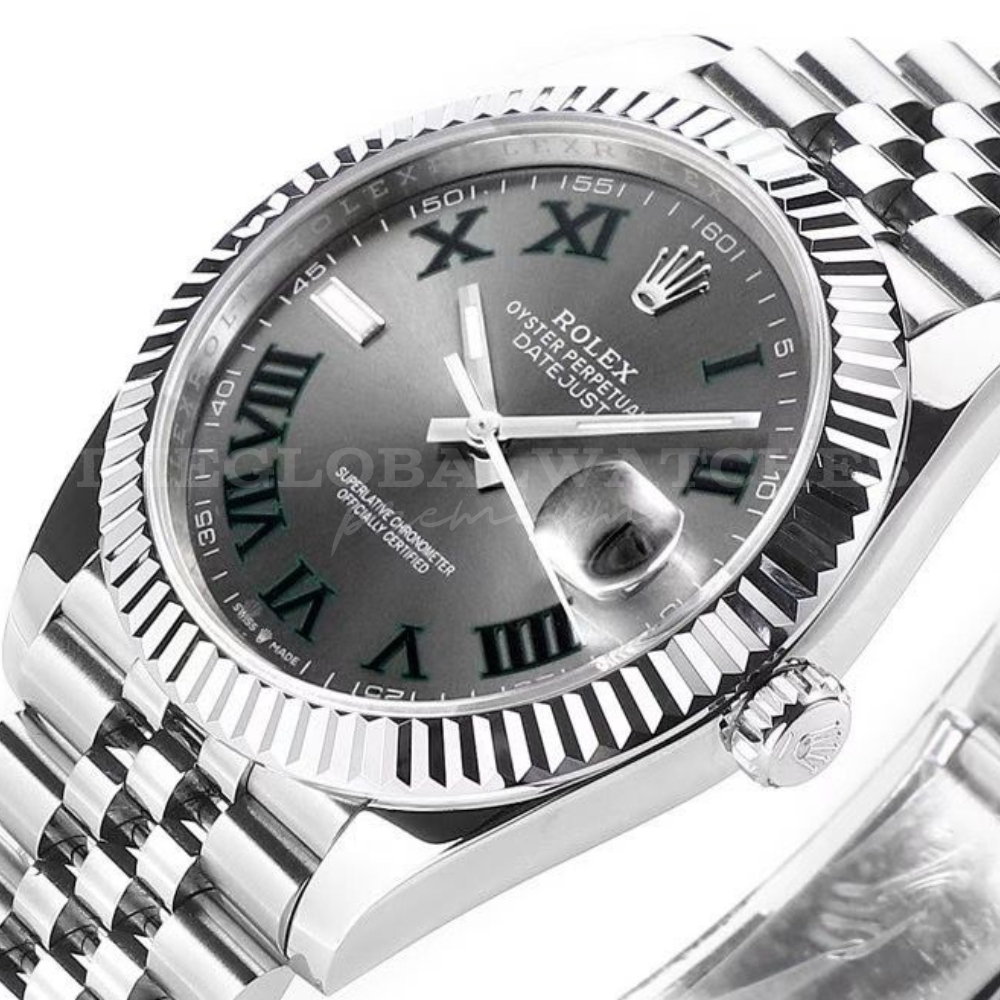 The Rolex Datejust 126334 Wimbledon Edition stands as an expression of power, confidence, and timeless appeal. Crafted from robust stainless steel and complemented by a fluted white gold bezel, it embodies Rolex’s legacy of enduring precision. Its Wimbledon grey dial and deep green Roman numerals create a contrast that feels both classic and daring.
